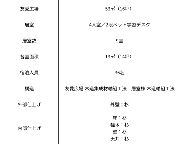 従来のボランティア寮は、築45年旧恵泉園の個室棟でした。快適なボランティア寮を建築するこ とは長年の夢であり、幸いなことに烏川流域森林組合のご協力で、地場産の木材で全木造建築を 行うことができました。
